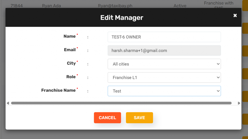 - The manager will appear in the Manager List with their assigned role and franchise.