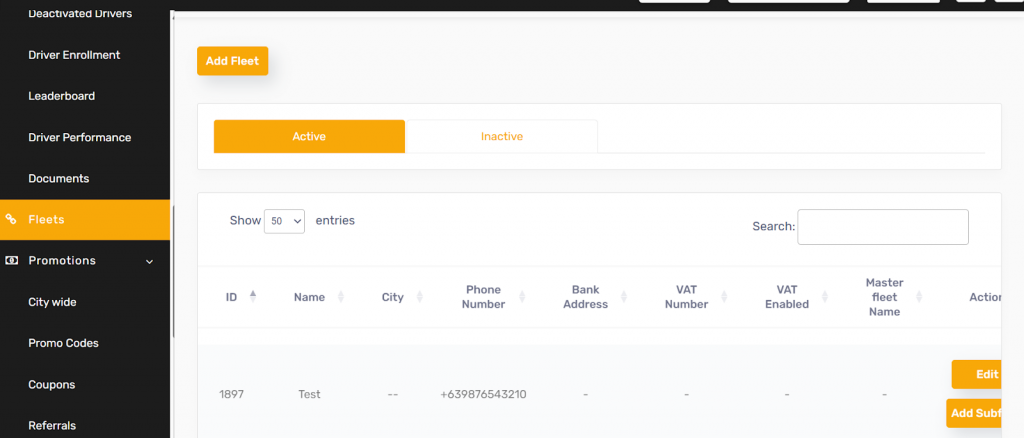 - Admin can view or edit fleet details from the list view.