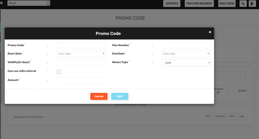- Validity (in days) – Specify how many days the promo will remain valid from the start date.